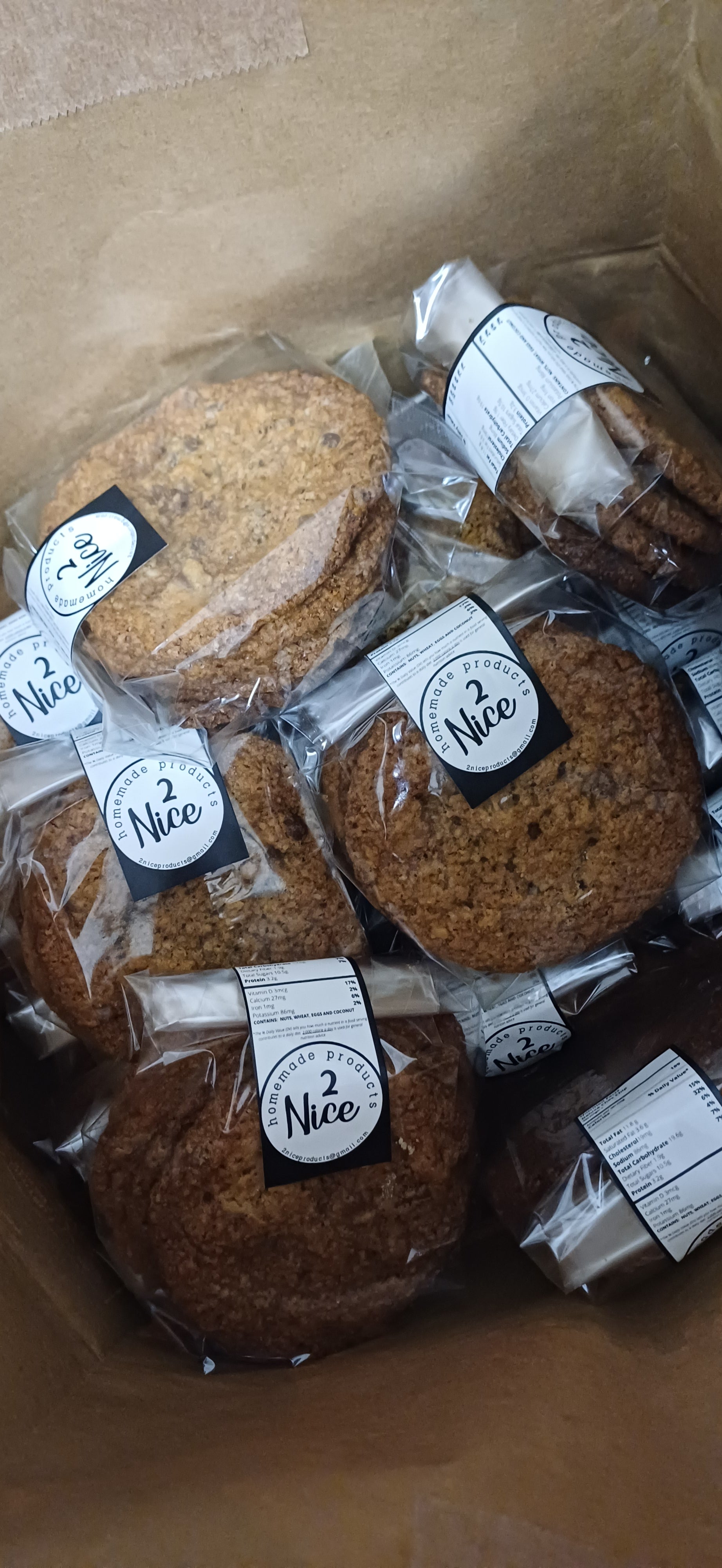 Indulge in the perfect combination of rich, melty chocolate chips, hearty oats, and crunchy nuts with our Deluxe Choc chip cookies. Satisfy your cravings with every bite and enjoy the added benefits of fiber, protein, and essential nutrients. Treat yourself to the ultimate cookie experience.